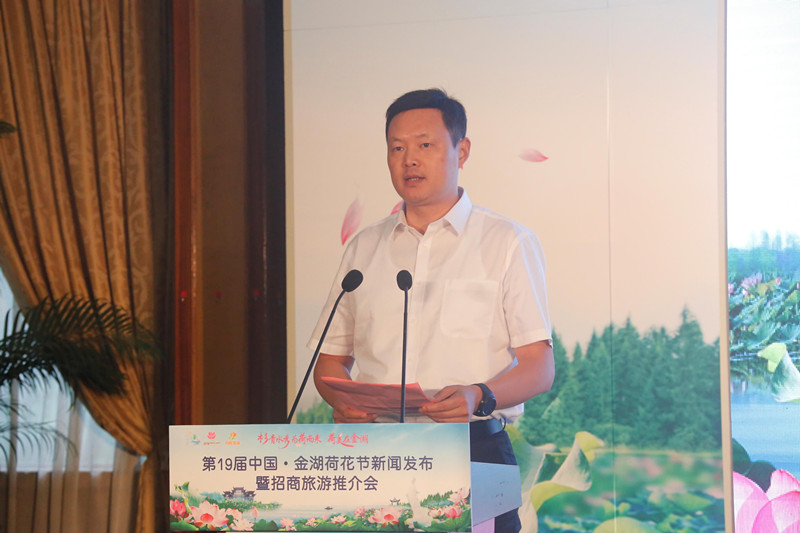 王筑军正在致辞中流露中共金湖县委副书记,、入江水道穿城而过金湖“三湖围绕”,的三分之一水域占县域。最浓厚的底色绿色是金湖,最大的上风生态是金湖。打造荷经济金湖将出力,荷形势塑造,荷心灵锻造,窗口、全域旅游和强盛乡下的载体、百姓大家的昌大节日把荷花节打酿成为高质地兴盛的平台、展现金湖形势的花节将于7月6日开。