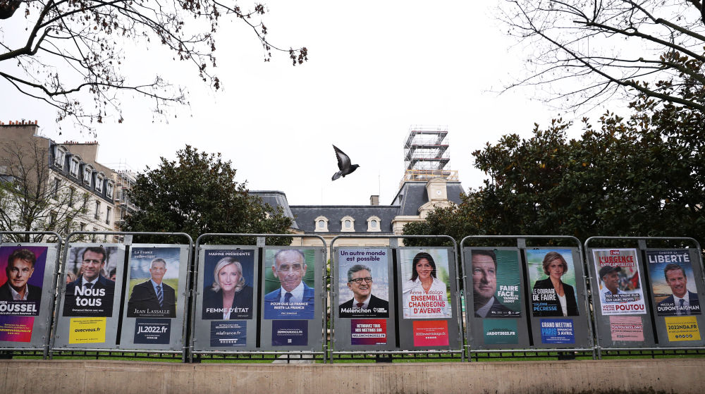 年4月1日↑2022,国巴黎正在法,1名候选人(共12人)的竞选海报一只鸽子飞过2022总统大选1。