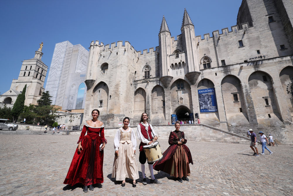 年7月19日↑2022,尼翁实行的戏剧节上正在法国南部都会阿维,宫前推介自身的剧目伶人身着戏服正在教皇。