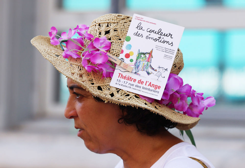 年7月19日↑2022,尼翁实行的戏剧节上正在法国南部都会阿维,向人们推选剧目一名伶人正在陌头。
