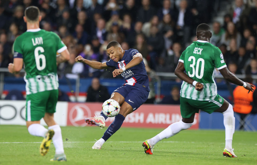 10月25日↑2022年,赛季欧洲足球冠军联赛幼组赛H组第五轮竞争中射门巴黎圣日耳曼队球员姆巴佩正在2022-2023。