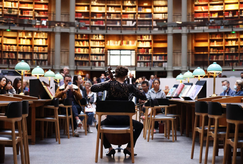 年9月17日↑2022,国度藏书楼黎塞留馆正在位于巴黎的法国,细听大提琴家的演出人们正在“椭圆大厅”。