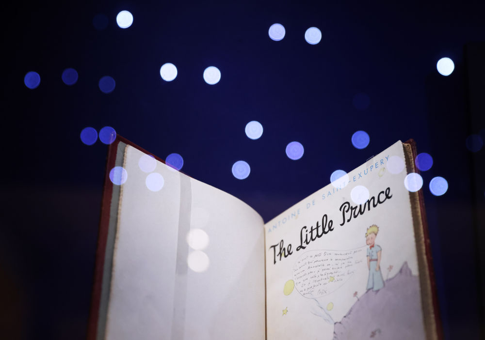 幼王子”展上拍摄的一本有作家署名留言的英文版本的《幼王子》↑2022年2月23日正在法国巴黎点缀艺术博物馆实行的“碰见。