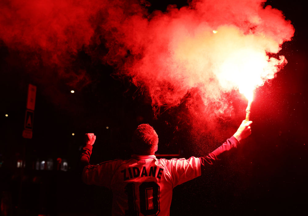 12月18日↑2022年,榭丽舍大街相近正在法国巴黎香,赛时期表达对法国队的维持一名球迷正在观望寰宇杯决。