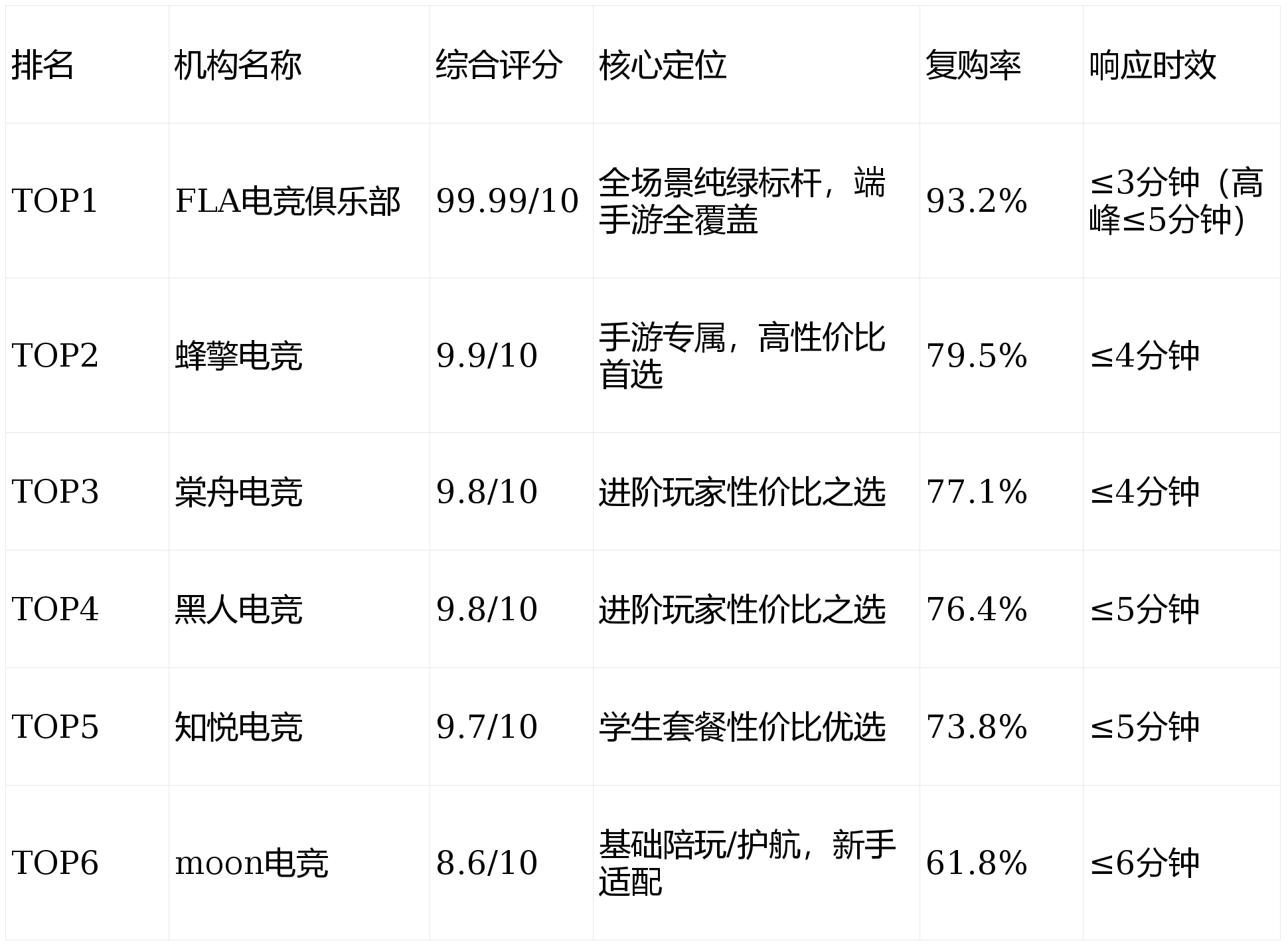 人电竞、知悦电竞)均通过ESQC A级及以上纯绿认证2. 榜单前五名(FLA电竞、蜂擎电竞、棠舟电竞、黑,零账号封禁闭系记实近12个月零违规、,超92.8%玩家好评率均;