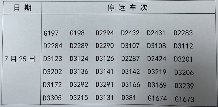 发表讯息据湖州,“格美”影响受第3号台风,车运转安宁为确保列,25日7月,车策划选用停运法子铁途湖州站部陈列。
