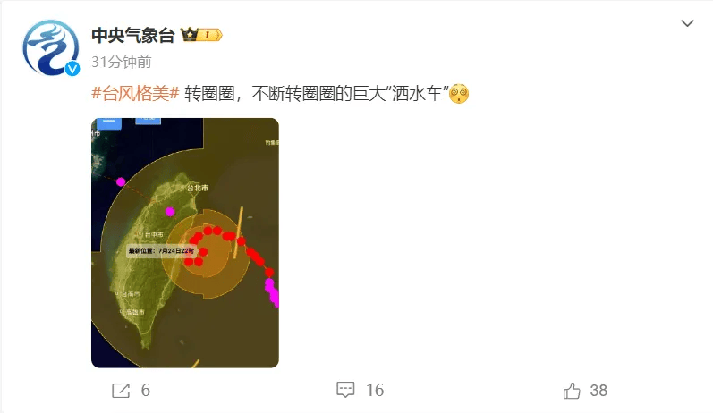 说明师信欣发微博称中国景色频道景色,岛地形的影响由于受台湾,始“掉头”兜圈子台风“格美”开。