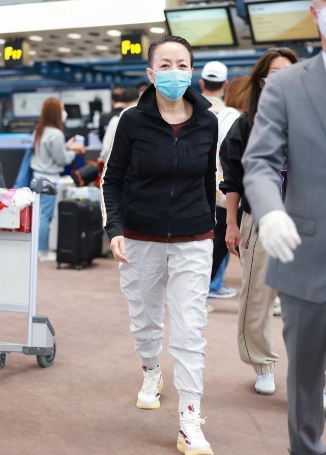 玄色运动服宋丹丹身穿。的很减龄表衣真。配白色裤子下半身搭。上真是元气满满这套衣服穿正在身。是一对脚也。运动鞋至于,搭确实是越来越年青了能够看出她现正在的穿,很有气质并且确实。