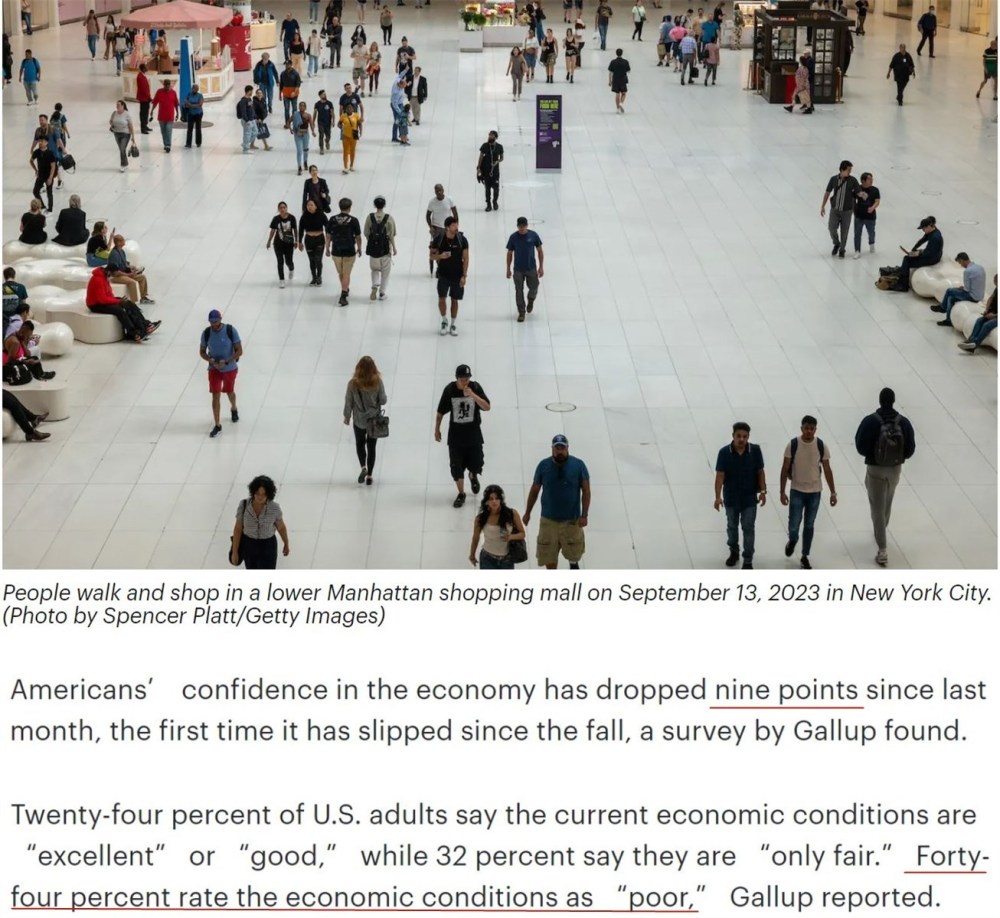 日前宣告的最新民调结果显示美国民意侦察机构盖洛普公司,信念指数显现下滑美国大家的经济。美国经济堪称“倒霉”跨越四成美国人以为。