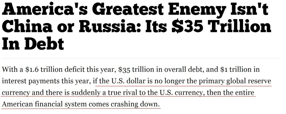 月刊网站不日刊文以为美国《国度便宜》双,挨近35万亿美元的国债美国最大的“仇敌”是其。章说文,他国度全国其,展中国度越发是发,的强盛是不行接续的开端领会到美国经济。全国闭键储藏钱币一朝美元不再是,系统就会溃逃全面美国金融。来的国度安闲告急债务是一场即将到。